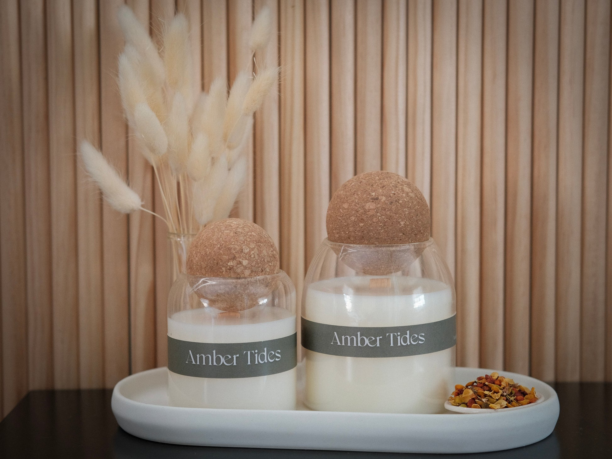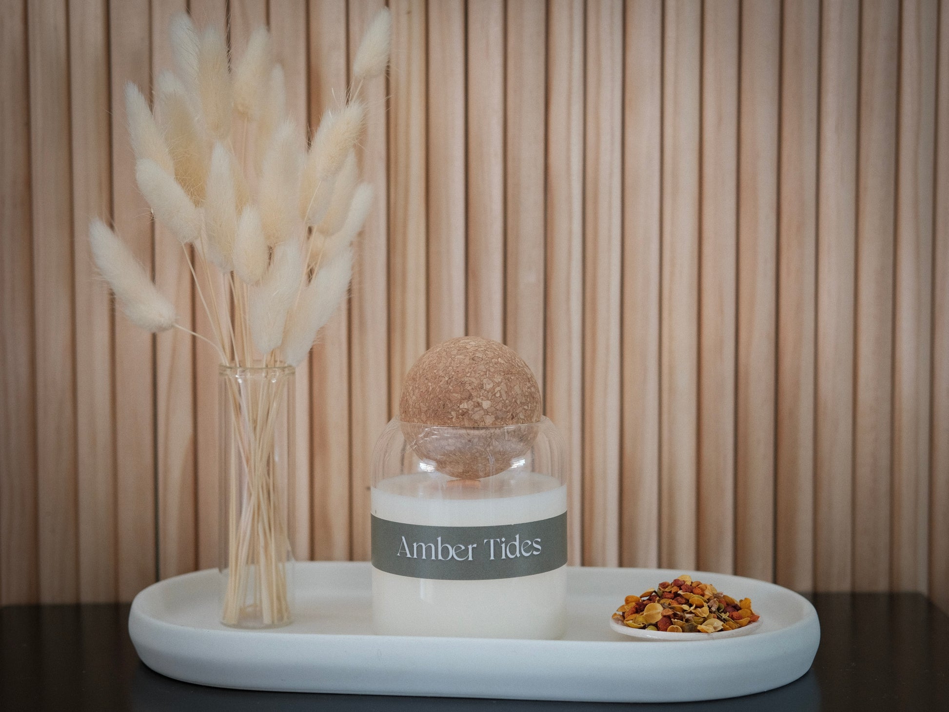 Amber Tides is a warm, comforting scent that blends the creamy sweetness of coconut with the earthy richness of sandalwood. The smooth, tropical notes are balanced by the deep, resinous warmth of amber, creating a soothing, inviting atmosphere. This fragrance evokes a cozy, sun-drenched getaway, where soft breezes meet golden sands, offering both relaxation and a touch of luxury.