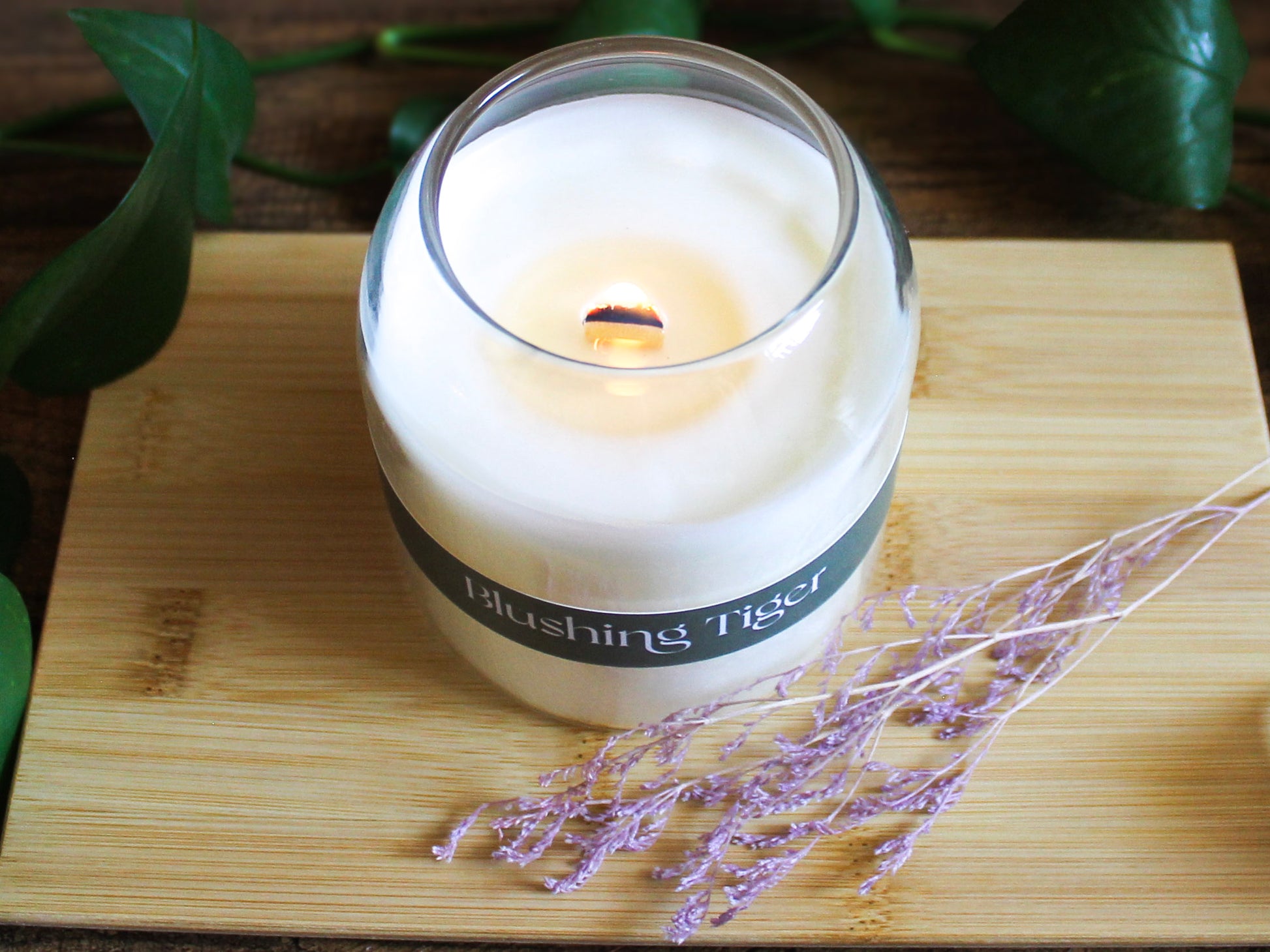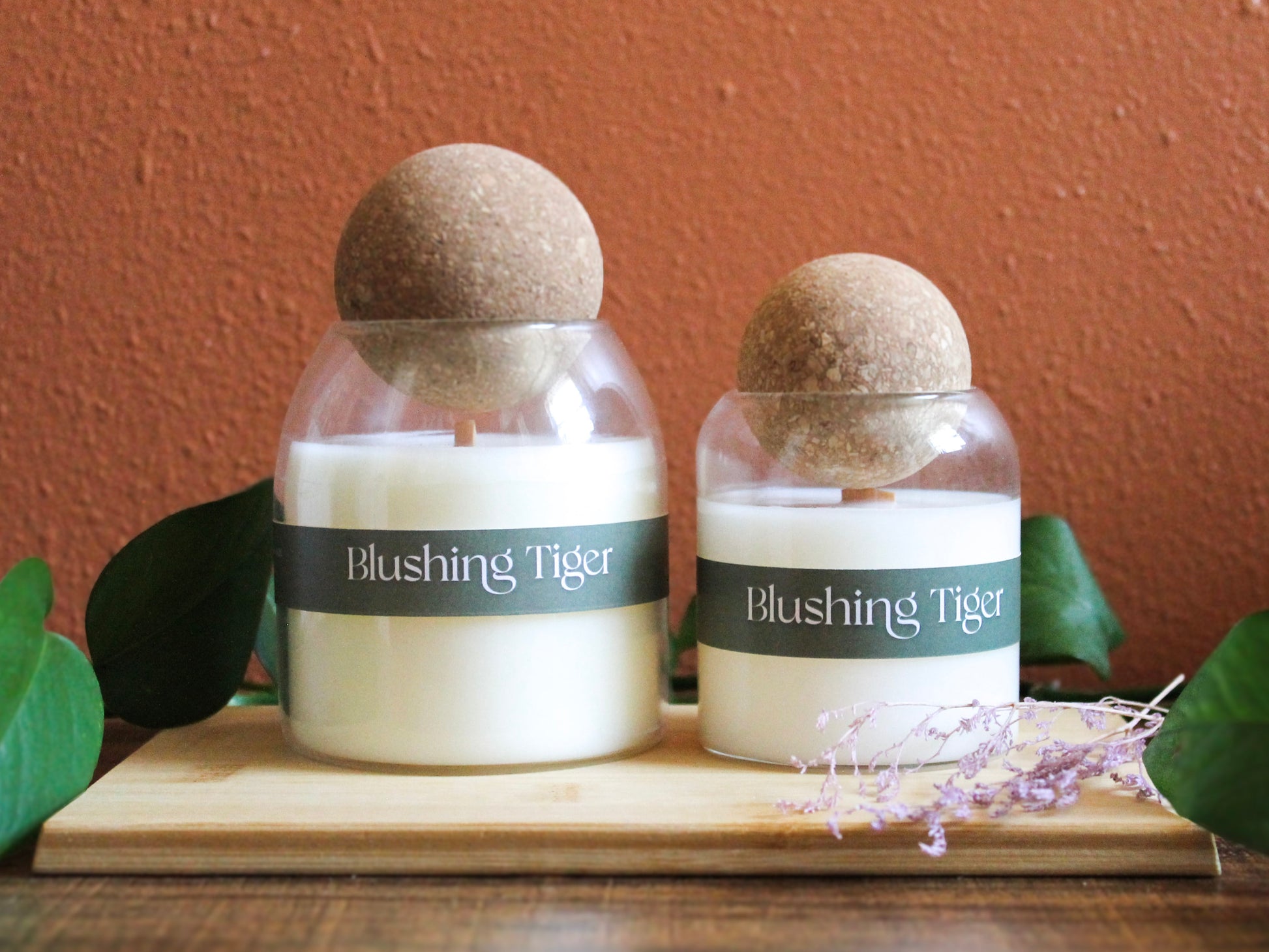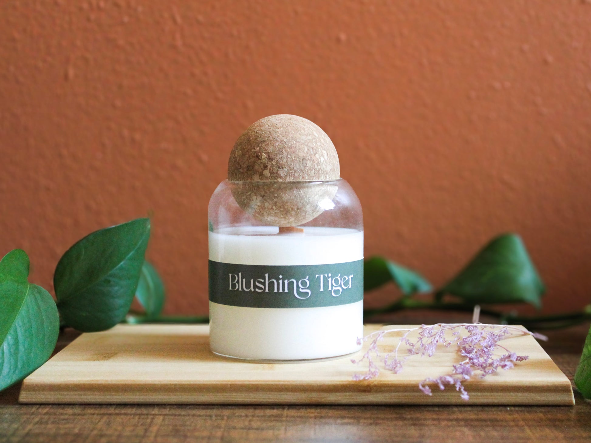 Blushing Tiger blends the exotic florals of tiger lily with the fruity sparkle of pink lychee, creating a scent that’s soft, tropical, and subtly seductive. Whether you’re manifesting, unwinding, or getting ready to own the day, this candle brings bold energy wrapped in a delicate glow.